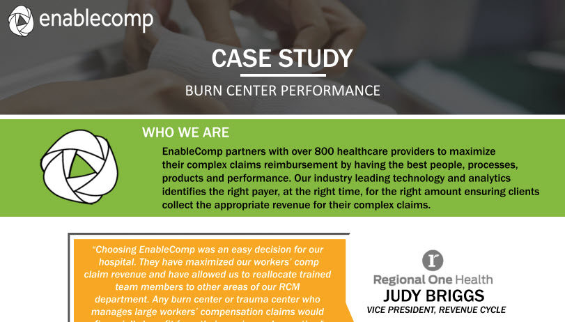 As the market leader in workers’ compensation revenue cycle for hospitals, EnableComp provides some of the best billing and collections outcomes in the industry.